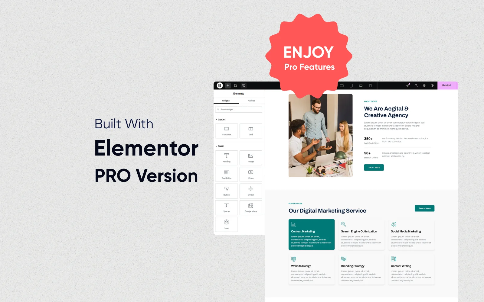 Premium Pro Design: Built with Elementor Pro to deliver sophisticated animations, dynamic content, and a cutting-edge layout that immediately establishes your agency’s expertise.