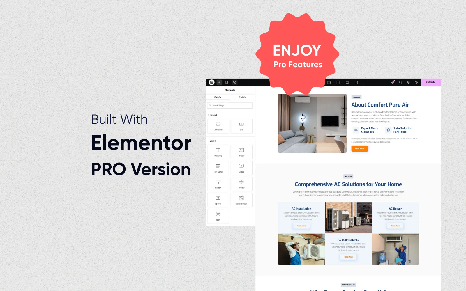 Launch a Fresh, Breathable Website in Hours with Comfort Pure Air. The Ultimate Elementor Template Kit for AC Technicians & Air Quality Specialists.