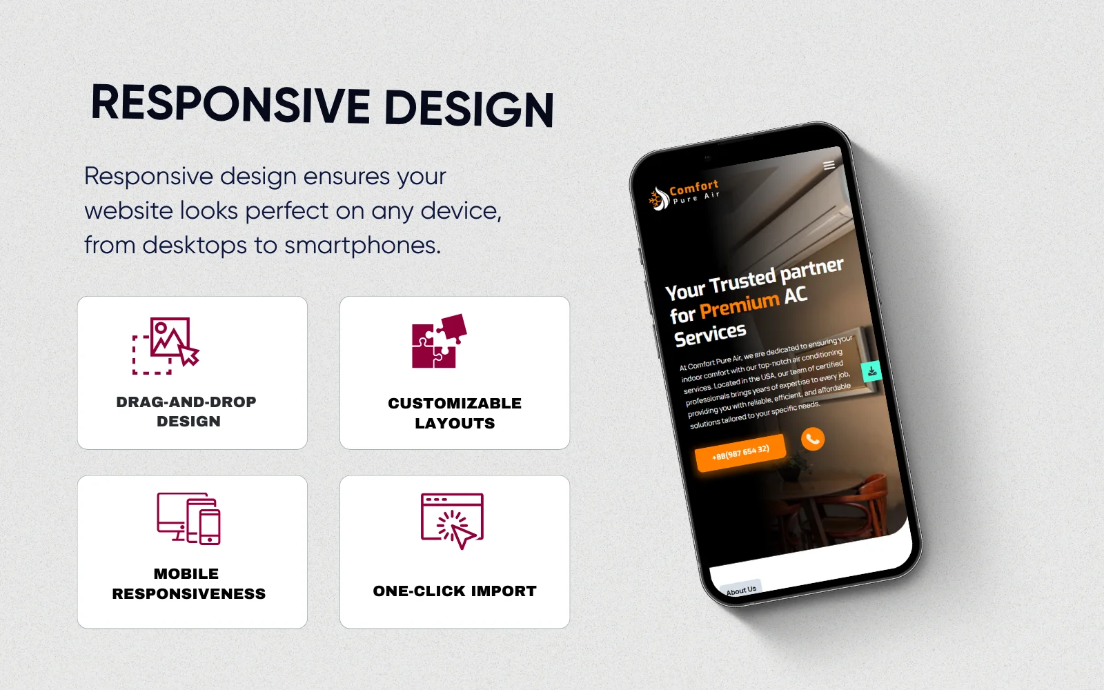Mobile Perfect: Your site will look sharp on any device—essential for customers searching for AC repair on their phones during a heatwave.