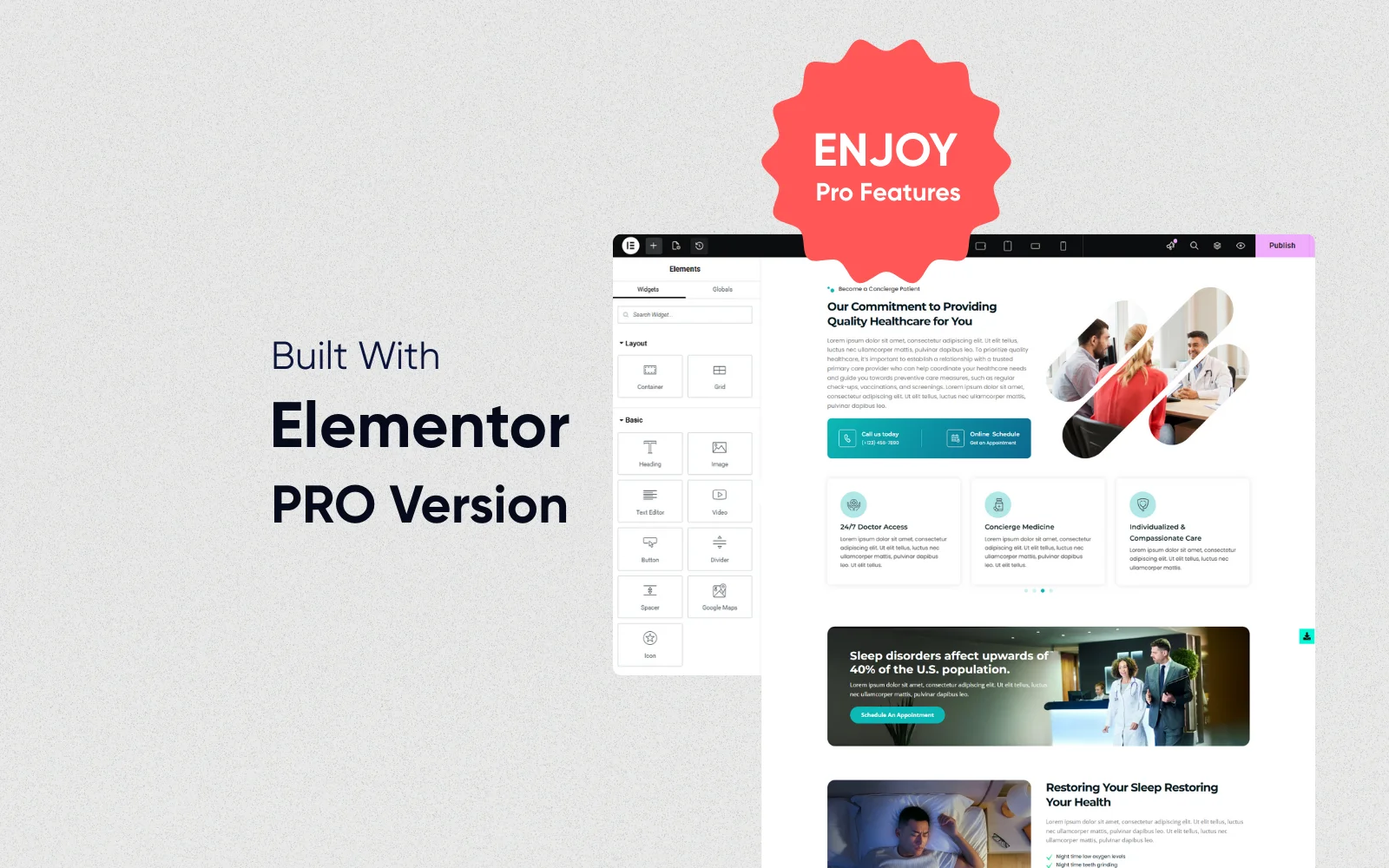 Powered by Elementor Pro: We designed this kit to leverage the advanced capabilities of Elementor Pro. Enjoy dynamic headers, sticky navigation, and premium motion effects that free themes can’t match.