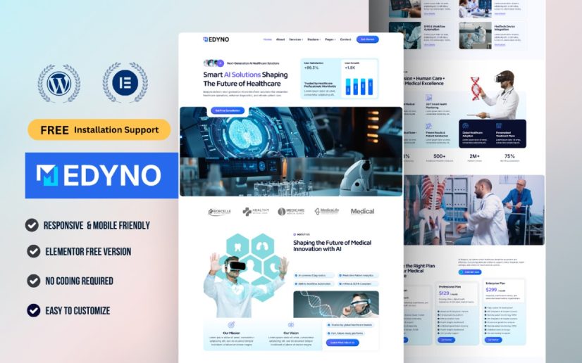 Medyno is a cutting-edge WordPress Elementor Template Kit designed specifically for modern medical professionals, AI health-tech startups, biotech firms, and private clinics. Blending advanced functionality with a clean, trustworthy aesthetic, Medyno is the ultimate digital asset for any healthcare brand looking to establish authority online.